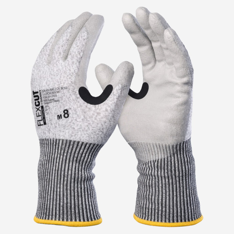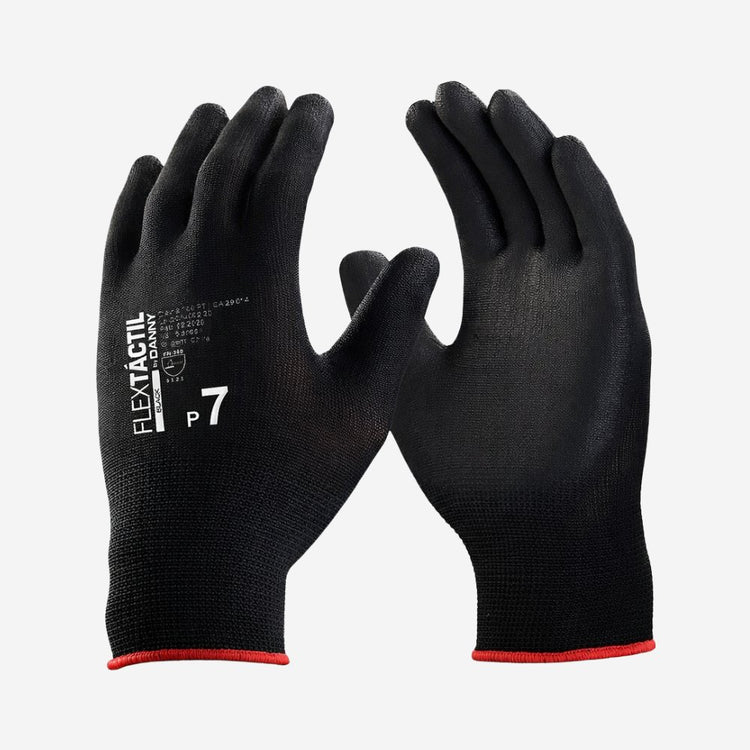 Luva de segurança confeccionada em suporte têxtil, com fios de HPPE, fibra de vidro e elastano, revestimento em borracha nitrílica na palma, dedos e face dos dedos; Punho tricotado com elástico, acabamento em overloque. Com variações de punho em 5cm, 15cm e 25cm.