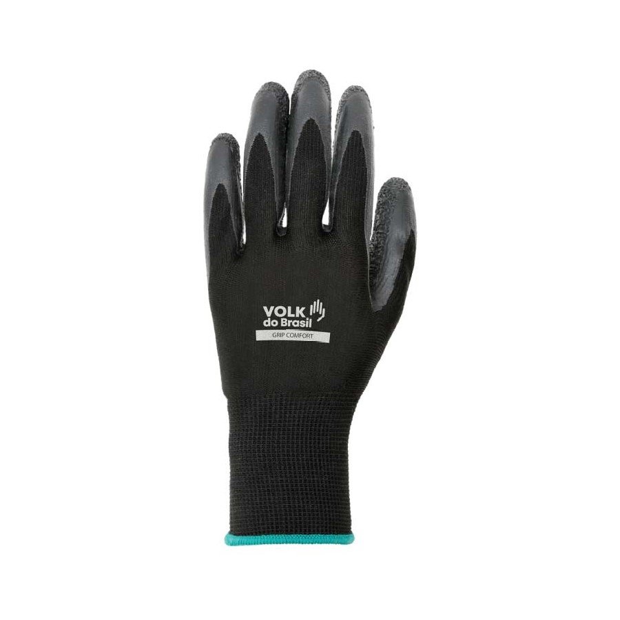 Luva de segurança confeccionada em látex natural, com acabamento interno flocado e palma antiderrapante.