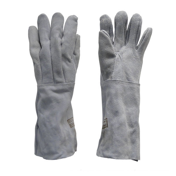 Luva de segurança confeccionada em vaqueta na palma e face palmar dos dedos, dorso e face dorsal dos dedos em raspa, reforço interno na palma, elástico no dorso para ajuste. Punhos: 15cm, 20cm, 30cm e 40cm.