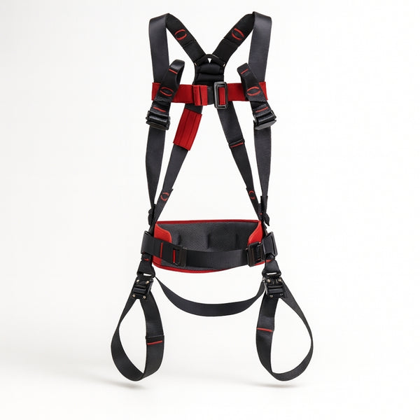 Cinturão de segurança tipo paraquedista- confeccionado em fita primária de poliéster de 45mm e fita secundária de poliéster de 25m. Possui 1 ponto de ancoragem dorsal em argola D de aço alloy e 1 extensor dorsal removível, em fita de poliéster de 45 mm com argola D de aço alloy, para uso exclusivo com trava quedas retrátil. Possui 3 fivelas duplas em aço inox para ajustes, sendo 2 nas pernas e 1 na cintura. Possui 2 meia argolas em aço para ajuste na fita secundária. O cinturão de segurança é utilizado com os seguintes talabartes e trava-quedas: 1) Talabarte de segurança contra quedas: 650/1 e 650/4. 2) Trava-quedas deslizantes: 704.