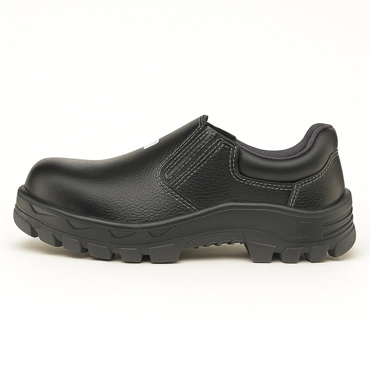 I) Calçado com absorção de energia na região do salto (calcanhar) e com resistência ao escorregamento em piso de cerâmica contaminado com lauril sulfato de sódio (detergente) e com glicerol (óleo). (SRC). II) Solado resistente ao óleo combustível (FO).