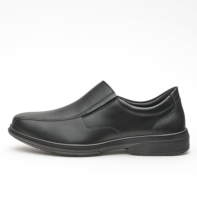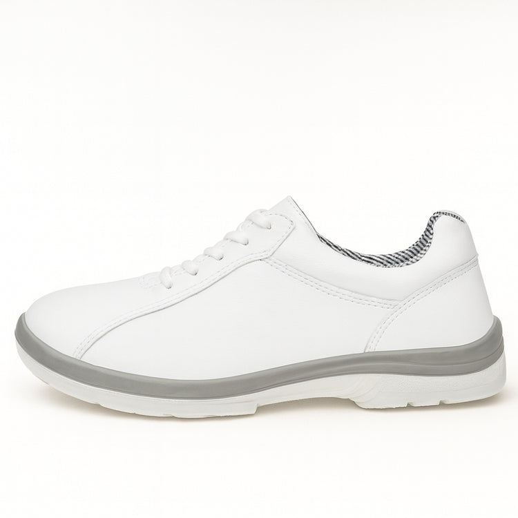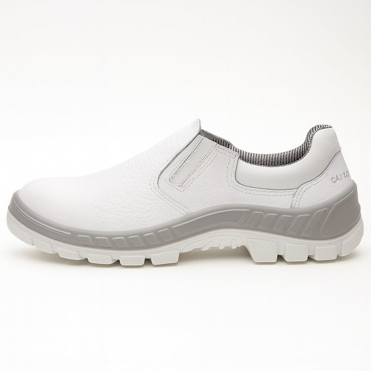 Calçado ocupacional de uso profissional tipo sapato, fechamento em cadarço, confeccionado em couro e material têxtil, forro da gáspea em não tecido, forro lateral em tecido, palmilha de montagem em não tecido fixada pelo sistema strobel, palmilha interna removível, biqueira termoplástica para conformação, solado de borracha colado e blaqueado.